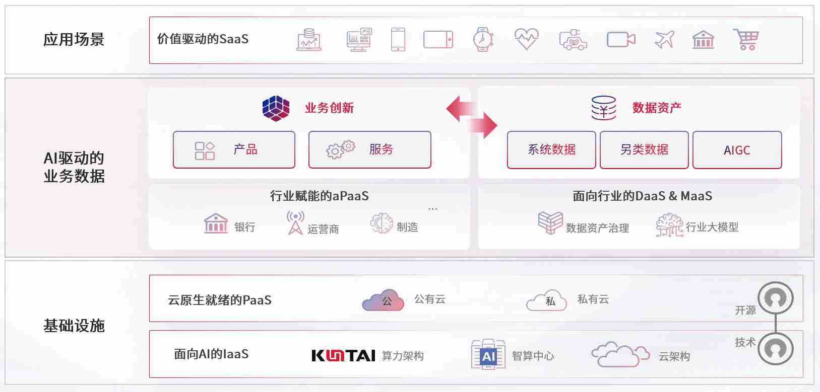 数字时代,,,围绕企业数字化转型的关键要素,,,,98堂论坛数码开创性的提出数云融合战略和技术体系框架,,,,着力在云原生、、数字原生、、、AI原生和信创产业上架构产品和服务能力,,,,为处在不同数字化转型阶段的快消零售、、汽车、、、、金融、、、、医疗、、、、政企、、、、教育、、、运营商等行业客户提供泛在的敏捷IT能力和融合的数据驱动能力,,,,构建跨界融合创新的数字业务场景和新业务模式,,,助力企业级客户建立面向未来的核心能力和竞争优势,,全面推动社会的数字化、、、智能化转型升级。。。。